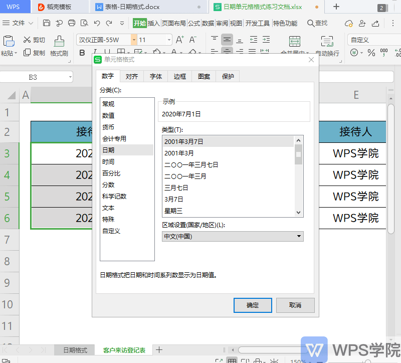 WPS如何在表格单元格中设置日期格式?